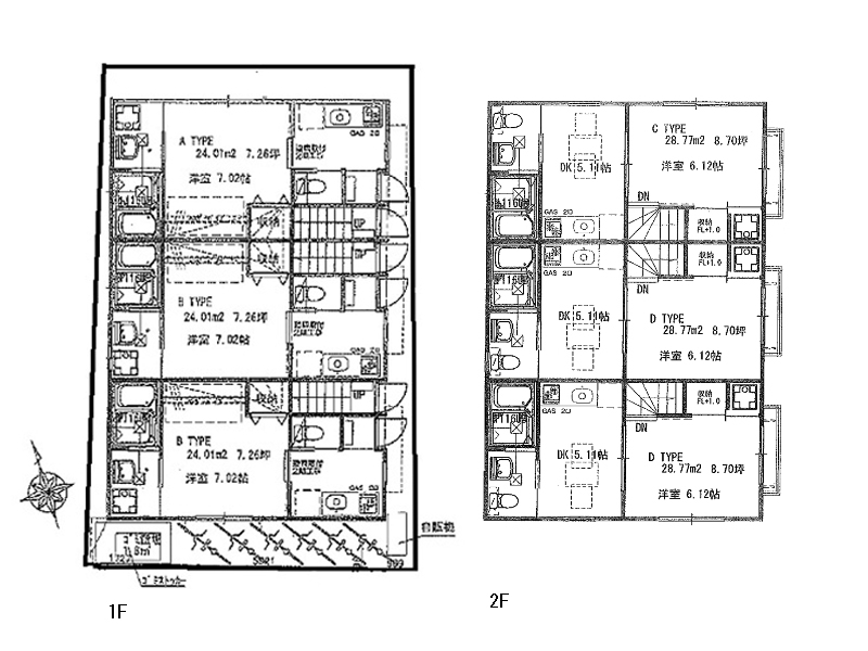 - 間取り/1K×3戸+1DK×3戸