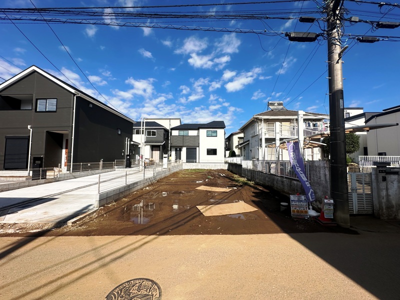 「船橋」駅バス6分、停歩9分。高台の閑静な住宅街に位置します全4区画の分譲地。うち3区画は建売新築での販売。そして1区画だけが建築条件なしの土地として販売中なんです。