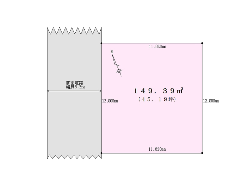 45.19坪、建築条件なし土地。間口も広く、土地形状が良いので実際よりも広く見えたりしますね。