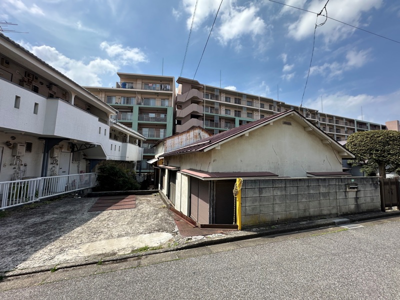 写真でご覧の通り、道路面と敷地に高低差あり。そして古家あり。なので嬉しいこの価格設定なんです。坪単価(約3.3㎡当たり)21.7万円。確かにもろもろ費用は考えないといけませんけどね。