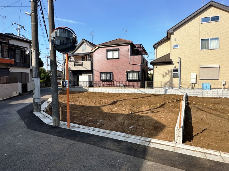 「高根公団」駅徒歩10分。閑静な住宅街に全2棟新築現場が登場です。今回は角地側に位置する1号棟を紹介いたします。