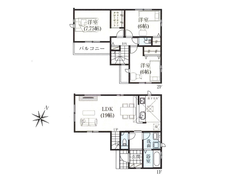 LDK19帖の3LDK。全居室6帖以上、主寝室にはウォークインクローゼット付。なかなかに使い勝手は良さそうですよ。