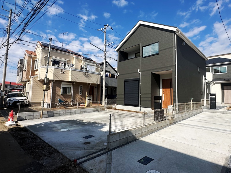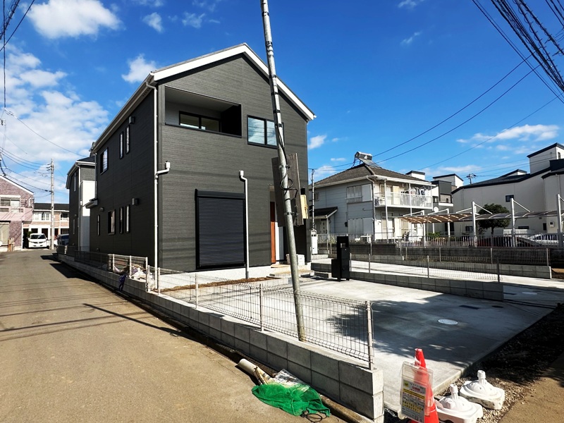 「船橋」駅バス6分、停歩9分。高台の閑静な住宅街に全3棟新築現場+1区画の売地が登場。今回は1号棟をご紹介。