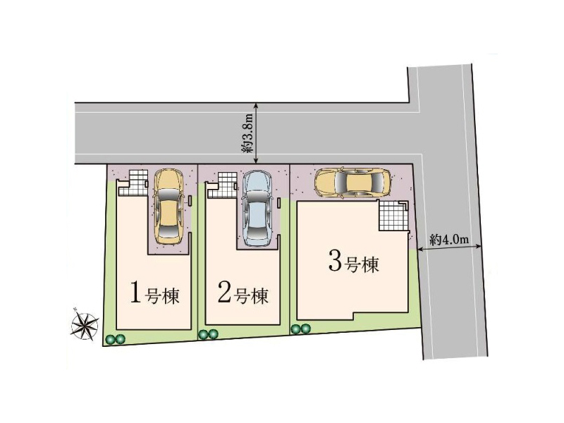 さて今回紹介しますのはそんなエリアに登場しました全3棟新築現場。角地に位置する3号棟です。他の2棟とは異なり3号棟だけ2階建てなんです。どうしても3階建てに抵抗のある方ってたま~にいらっしゃるんですが、場所はいいんだけど3階建てなのが~、なんてご家族にも自信を持っておススメしちゃいますよ。