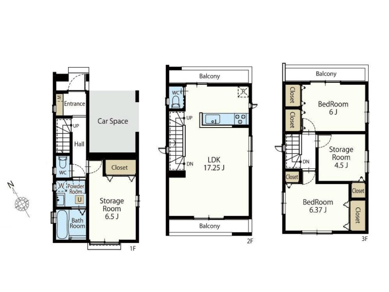LDK17.25帖の2LDK+2S。3階建ての王道間取りですね。いつものように住宅性能評価において耐震性、耐風性を含む7項目で最高等級を取得。そして省エネ性能は昨今話題のZEH水準。購入後も安心してお住まい頂けるかと思います。