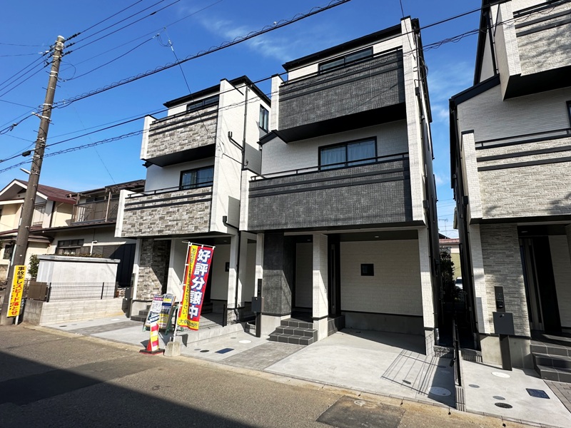 「塚田」駅徒歩9分。全4棟新築現場。既に1号棟は紹介済。今回は道路から見て右から2番目、B号棟を紹介いたします。