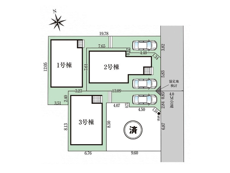 今回の物件は3号棟。道路から見て左側の奥の棟。LDK18.62帖の3LDKです。