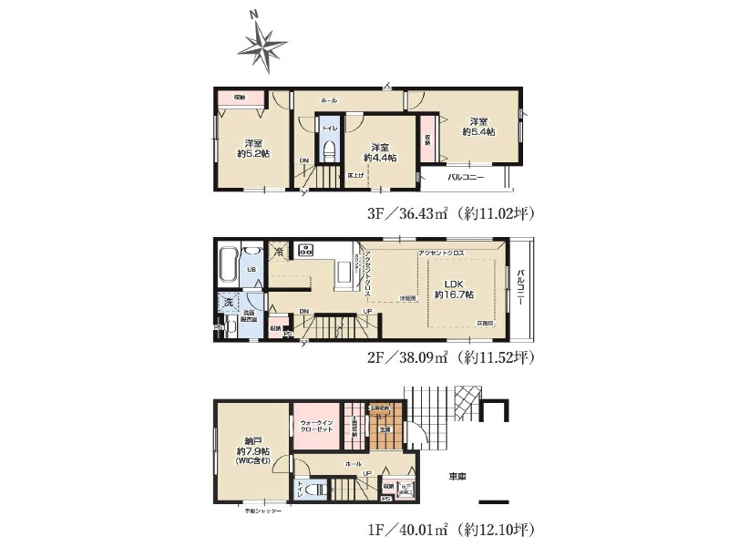 3階建ての王道間取り。ですがキッチンにはL字型キッチンを採用、そしてキッチン後ろに水回り。かな~り生活動線が短くなるレイアウトです。お忙しいご家族にはその効果がどれほどのものか。