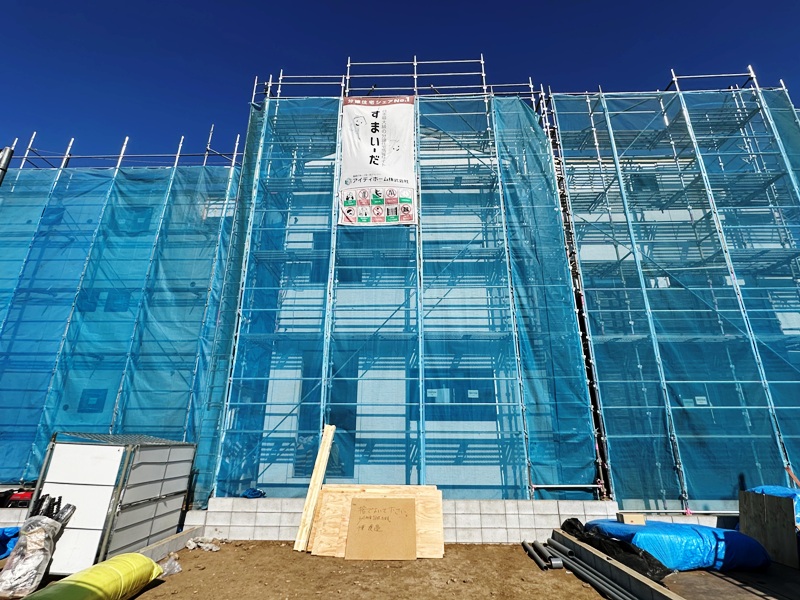 「津田沼」駅徒歩14分。全3棟新築現場より2号棟をご紹介。