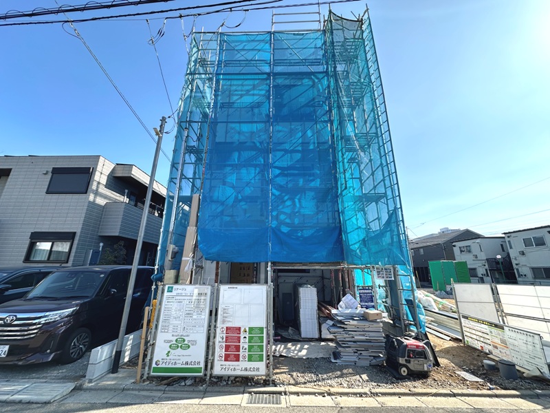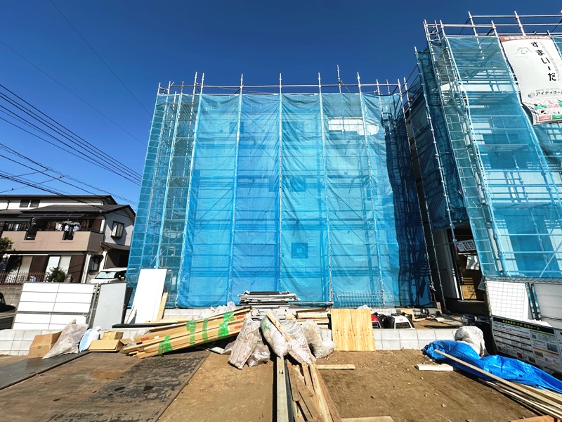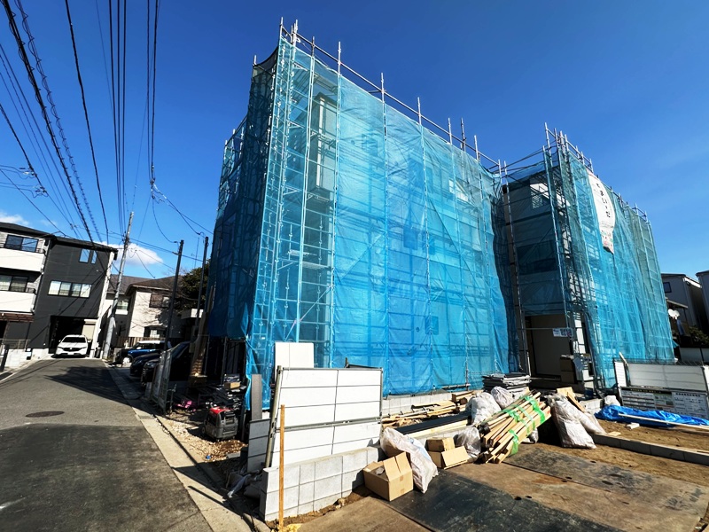 「津田沼」駅徒歩14分。全3棟新築現場より1号棟をご紹介。