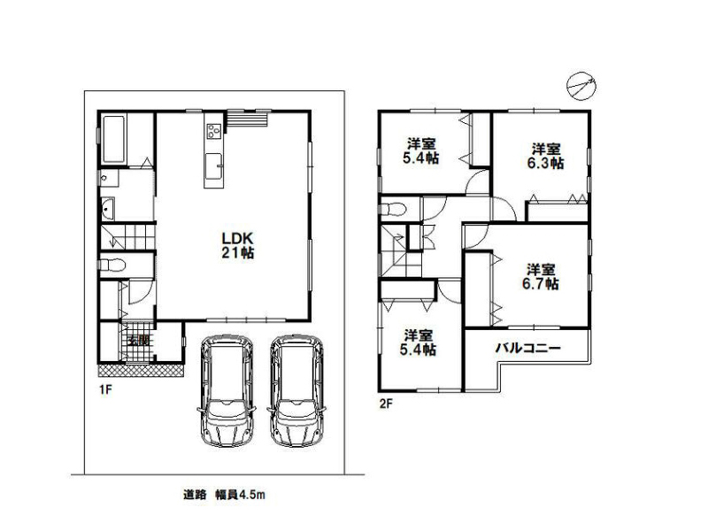 LDK21帖の4LDK。カースペースもしっかり2台分を確保。このエリア、お車でしたら四方八方の商業施設が利用可能になりますからね。