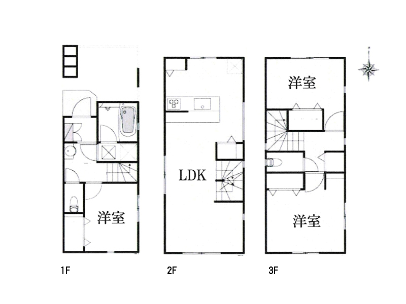 LDK14.8帖の3LDK。3階建ての王道間取ですね。食洗機、浴室暖房乾燥機など設備の面でも充実しております。