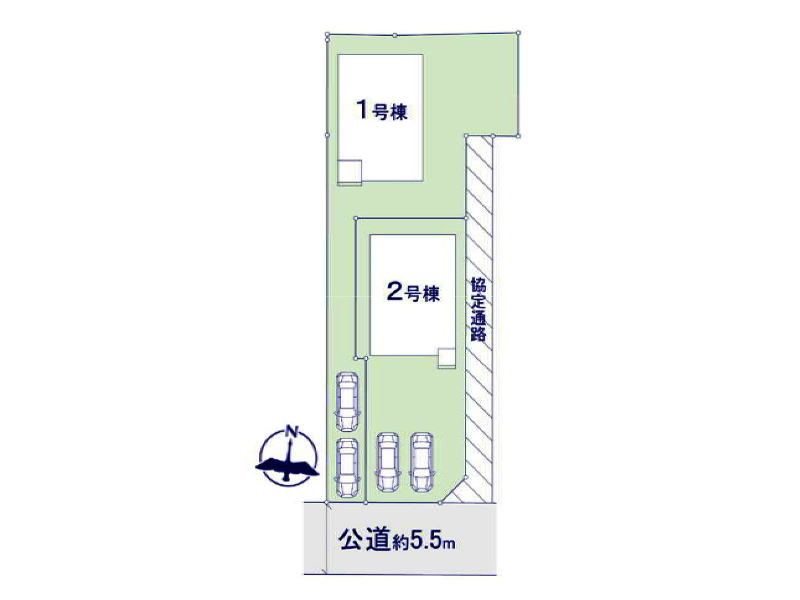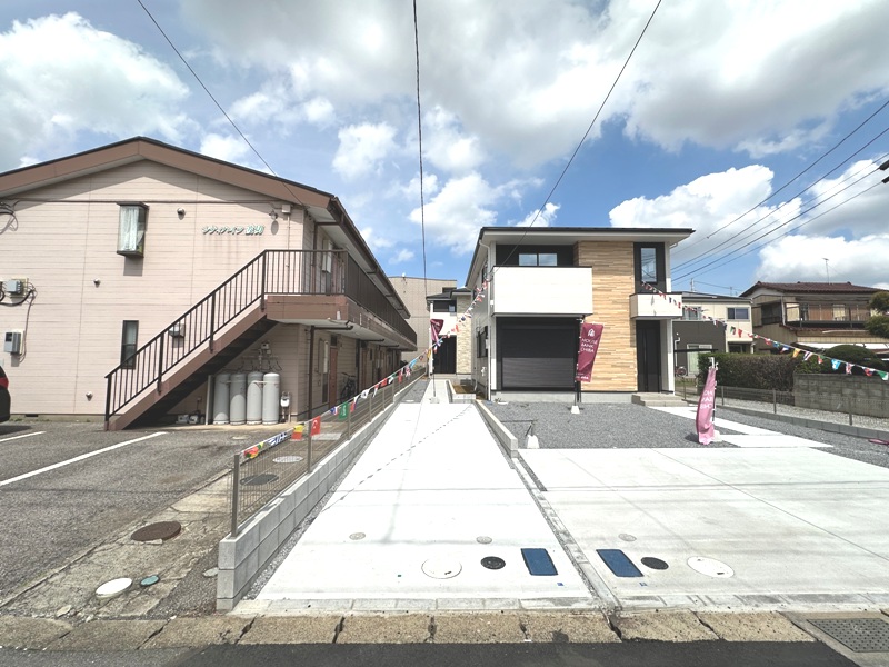 「習志野」駅徒歩24分。「北習志野」駅からバス便も利用可能です。全2棟新築現場、今回は道路から見て奥側の1号棟を紹介いたします。