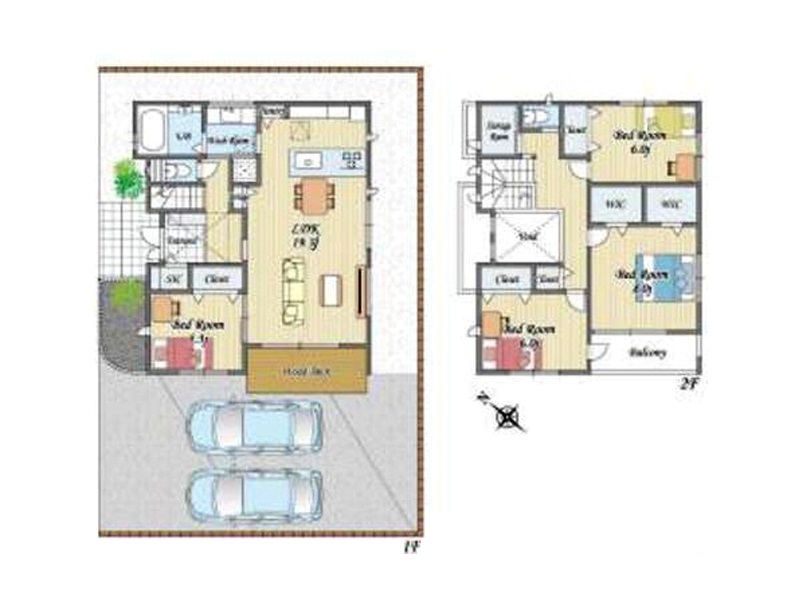 お家の方はLDK19.3帖の4LDK。2階居室は全て6帖以上のゆったり使いやすそうな間取りですよ。写真は北側からの撮影ですが、南側に回れば陽当りも良好です。