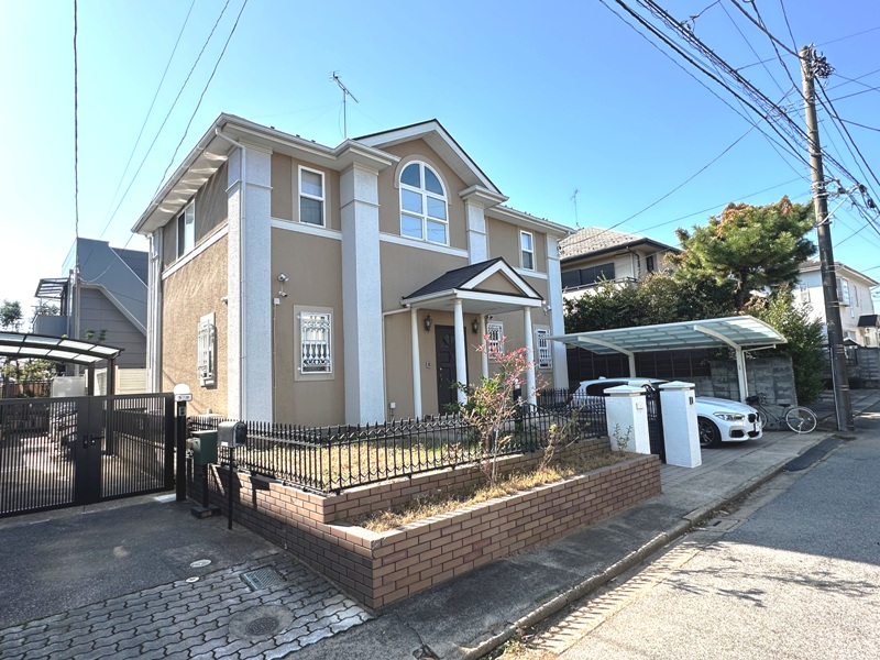 「海神」駅徒歩8分。閑静な住宅街に位置します。海神エリアは大昔は別荘地、そして現在は高級住宅街として人気です。今回の物件の立地もいかにも海神という趣のあるたたずまい。