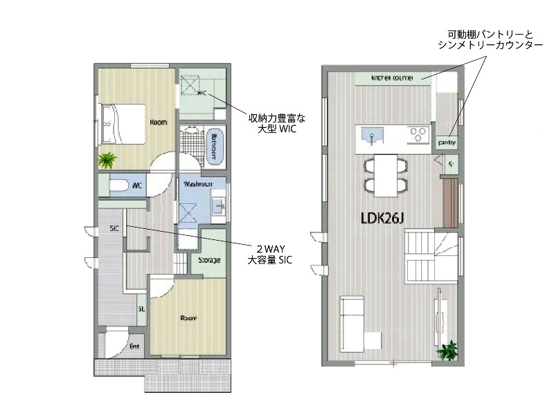 1階部分に目を向けますと玄関横に2WAYのシューズインクローク、各部屋には大き目の収納スペース。これまた使い勝手に重点がおかれた設計であることがうかがえますね~。