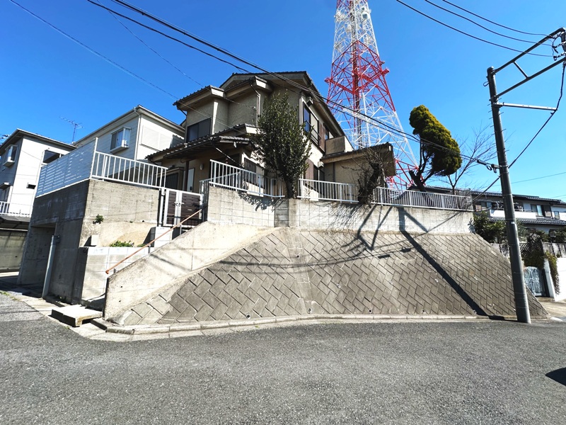 写真でご覧のように高台の中でも更に高台。しかも角地。これでもかの開放感と見晴らしの良さなんです。なんでもバルコニーから富士山とスカイツリーが一望との事ですよ。。